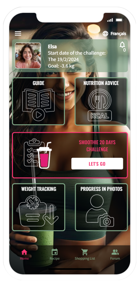 Our app, available in both French and English, is here to guide you through every step of the 20-Day Smoothie Challenge. Download it now by clicking the link or scanning the QR code below.